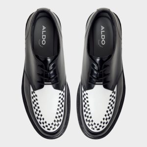 High-gloss black leather pairs with a bold checkerboard vamp, adding a rebellious touch to this Oxford, while tonal stitching and a cushy rubber sole balance statement looks with everyday comfort. Ground cropped charcoal trousers at gallery openings or lace it under black skinnies for late-night gigs-the graphic vamp carries the conversation.