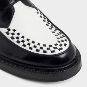 High-gloss black leather pairs with a bold checkerboard vamp, adding a rebellious touch to this Oxford, while tonal stitching and a cushy rubber sole balance statement looks with everyday comfort. Ground cropped charcoal trousers at gallery openings or lace it under black skinnies for late-night gigs-the graphic vamp carries the conversation.