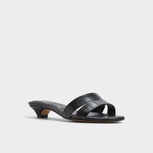 Glossy croc-embossed leather shapes this sleek slide, with a kitten heel and square footbed delivering discreet lift for city errands or poolside downtime, a touch of shine that stays refined. Pair with tailored shorts for gallery afternoons, or slide under a satin midi as rooftop cocktails melt into slow dancing.