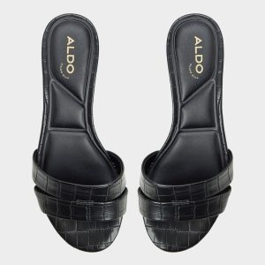 Glossy croc-embossed leather shapes this sleek slide, with a kitten heel and square footbed delivering discreet lift for city errands or poolside downtime, a touch of shine that stays refined. Pair with tailored shorts for gallery afternoons, or slide under a satin midi as rooftop cocktails melt into slow dancing.