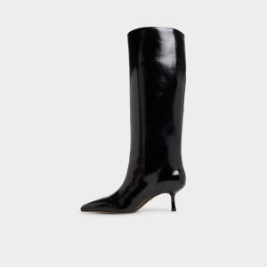 High-gloss patent leather reaches knee-high with a mirror-like finish, while a sharp pointy toe and slender kitten heel offer just-right lift, perfect for city-sleek yet walk-friendly days from morning briefings to midnight cab rides. Pair with a swishy midi for client lunches, or pull over skinny jeans when rooftop lounges call.