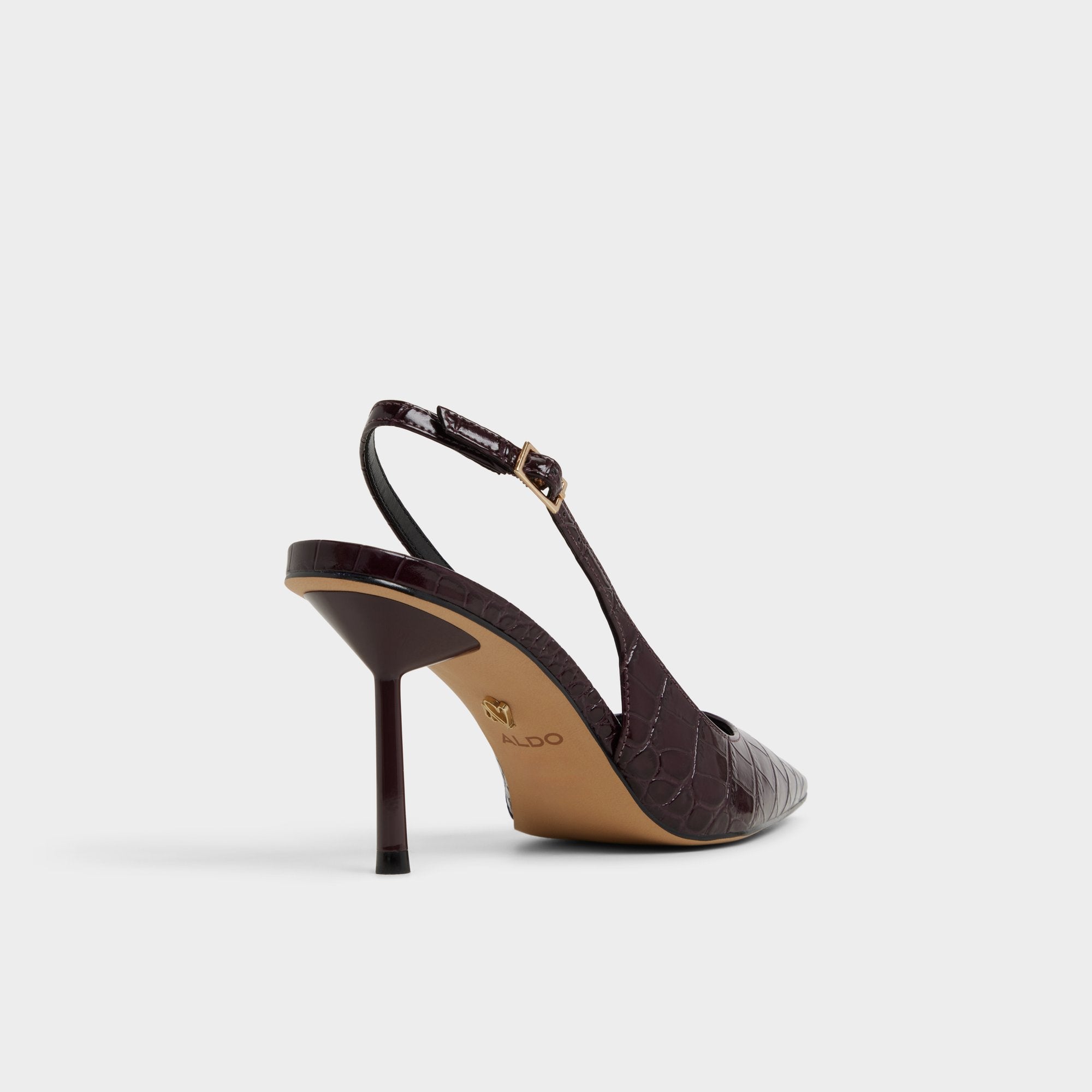 Glossy croc-embossed leather transforms the classic slingback into a little power move, with sculpted lines and a precise stiletto that keeps each stride sharp. Pair with tailored trousers for client pitches, or ground a velvet mini as gallery openings melt into late-night ramen debriefs, anywhere.