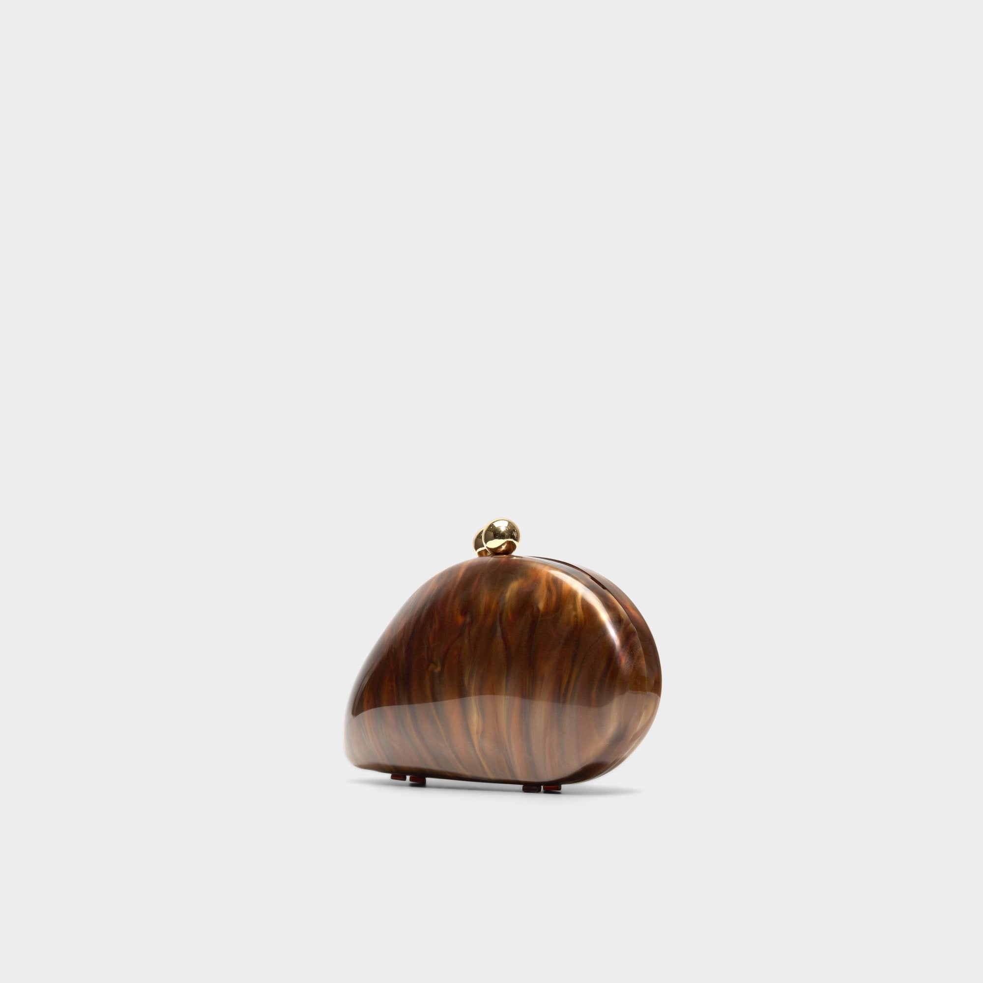 High-gloss marbled acrylic sculpts this pebble-slick clutch into a tiny work of art, crowned by gleaming orb-kiss lock hardware that snaps shut with satisfying certainty, keeping cards, keys, and lip tint quietly in place. Clutch it at gallery openings with a slip dress or tuck it under a blazer for late-night jazz, letting molten swirls finish the vibe.