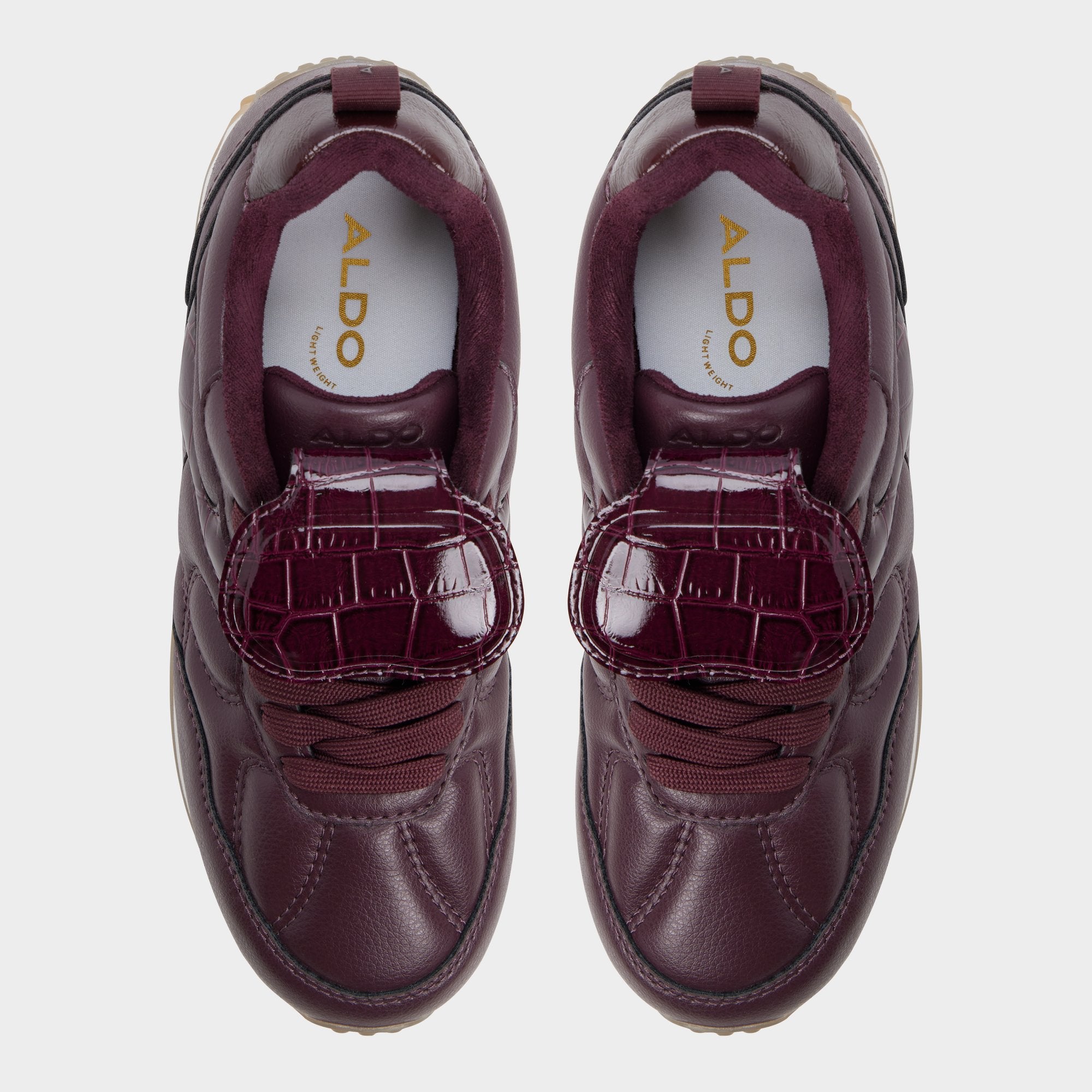 Deep merlot leather drapes quilted curves with croc-patent flashes, while a lace-and-Velcro closure delivers quick, secure comfort from morning errands to gallery-hopping nights, with a confident stride on crowded sidewalks. Pair with cropped denim for art crawls, or slip beneath a satin midi for cocktail hours.