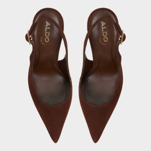 Cocoa suede cloaks sleek slingbacks, crowned by a pin-sharp stiletto that sharpens the silhouette and boosts confidence with every step, catching light with a whisper of luxury. Pair with tailored trousers for pitches, or swap in a satin midi as gallery nights drift into cocktails.