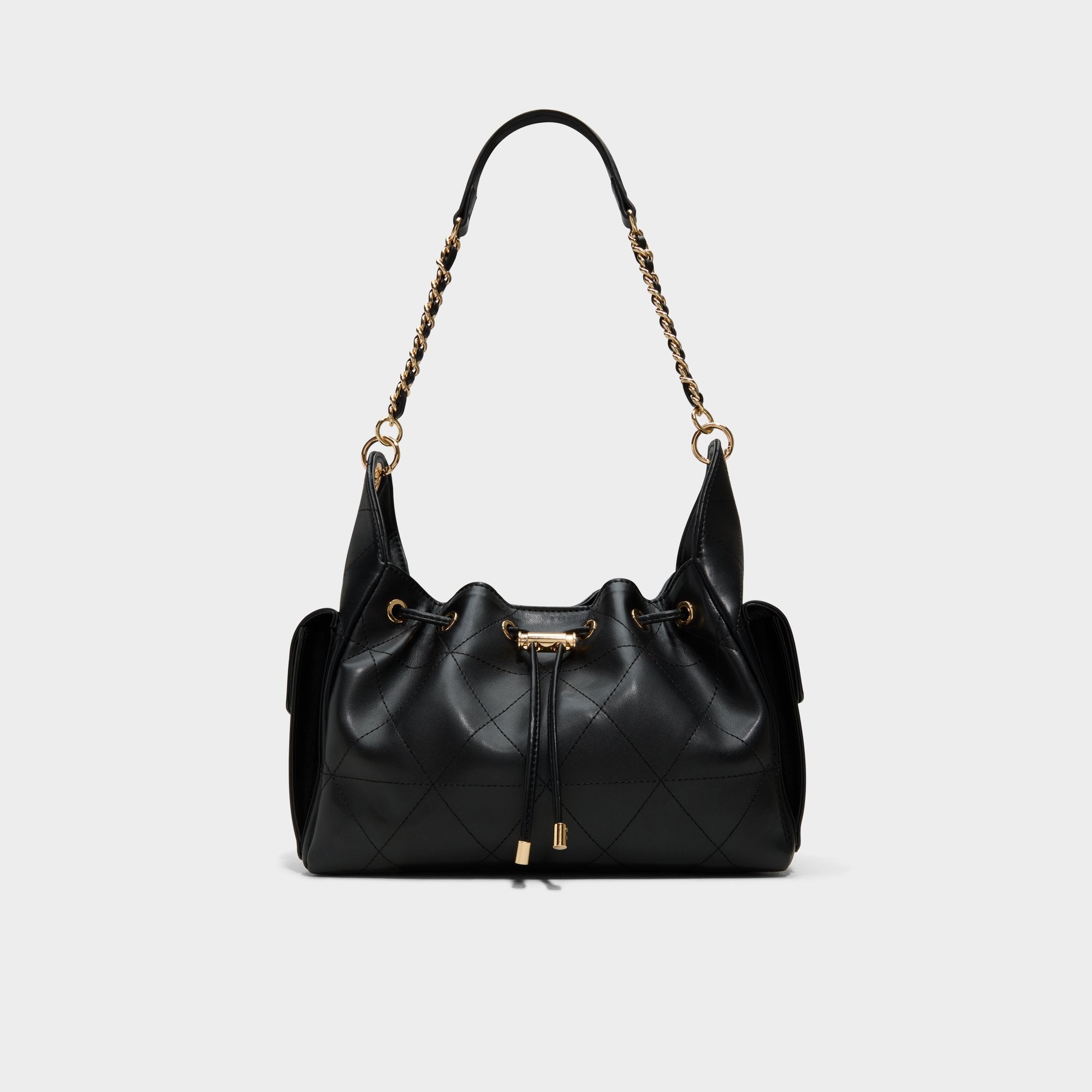 Supple leather is stitched into diamond quilting, cinched by a gleaming drawstring and topped with a leather-woven gold chain strap that swings with just enough polish for any occasion. Carry it with relaxed tailoring for office catch-ups or sling it over a slip dress after-dark, pulling everything together.