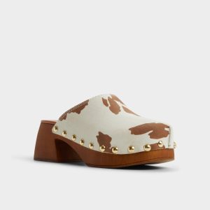 Cow-print canvas rides atop chunky wooden platforms framed by gleaming gold studs, turning every step into retro-road-trip confidence with a bold platform silhouette that begs for big-city nights and sunlit highway horizons. Pair with flared denim for outdoor markets, or swap in breezy midis when afternoons drift into vinyl detours.