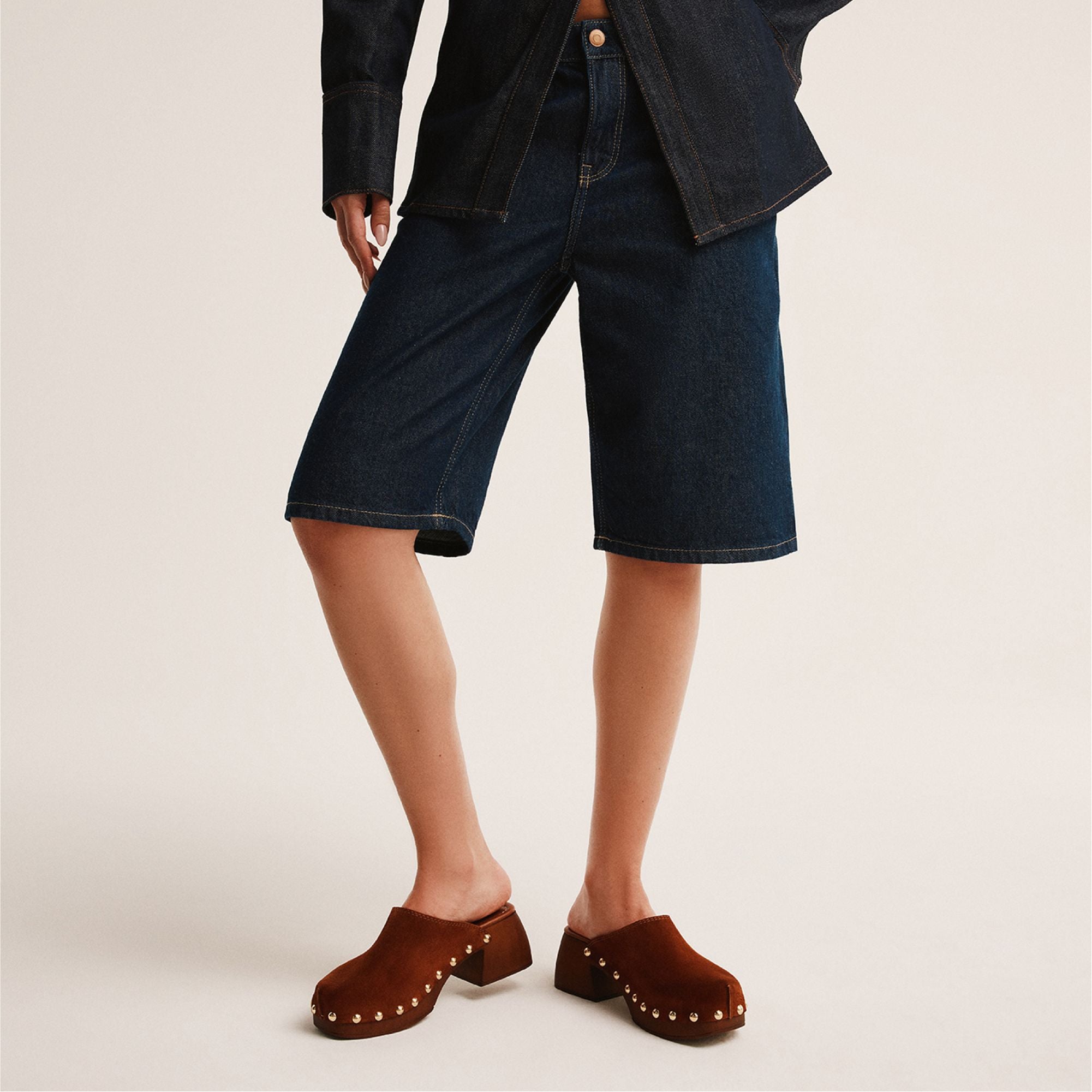 Soft suede drapes a sculptural wood clog sole crowned with gleaming studs, while a cushioned insole keeps city errands light, making every step feel balanced, grounded, and unexpectedly chic. Pair with cropped flares for coffee catch-ups, ground a prairie dress for easy festival days, or swap in linen separates to keep style effortless from dawn to dusk.