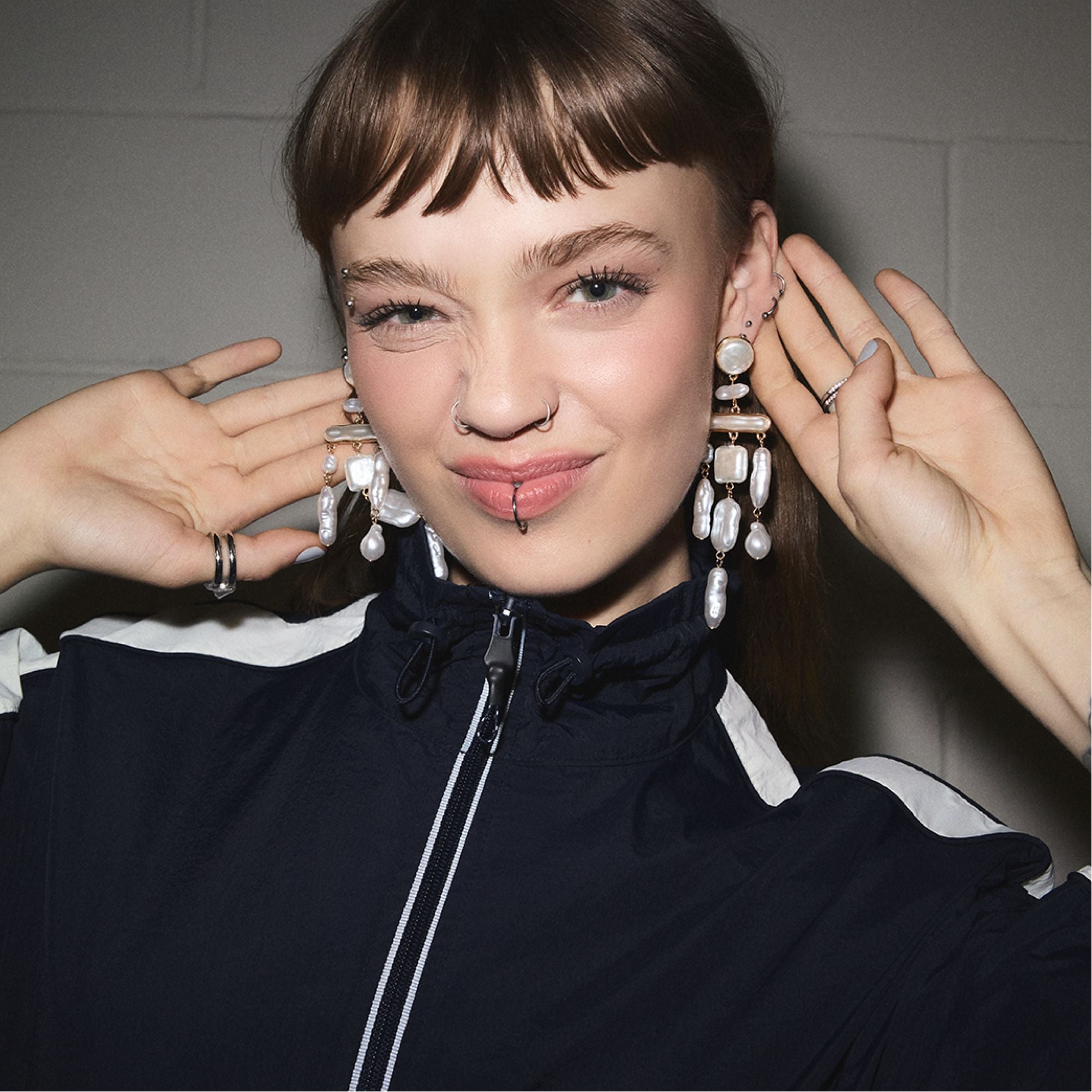 Irregular pearls cascade from gold-toned frames, turning the earrings into tiny chandeliers of light that catch the eye from every angle. Frame them with a sleek cocktail dress for evening drama, or top a crisp blazer-and-jeans look for city-night charm.