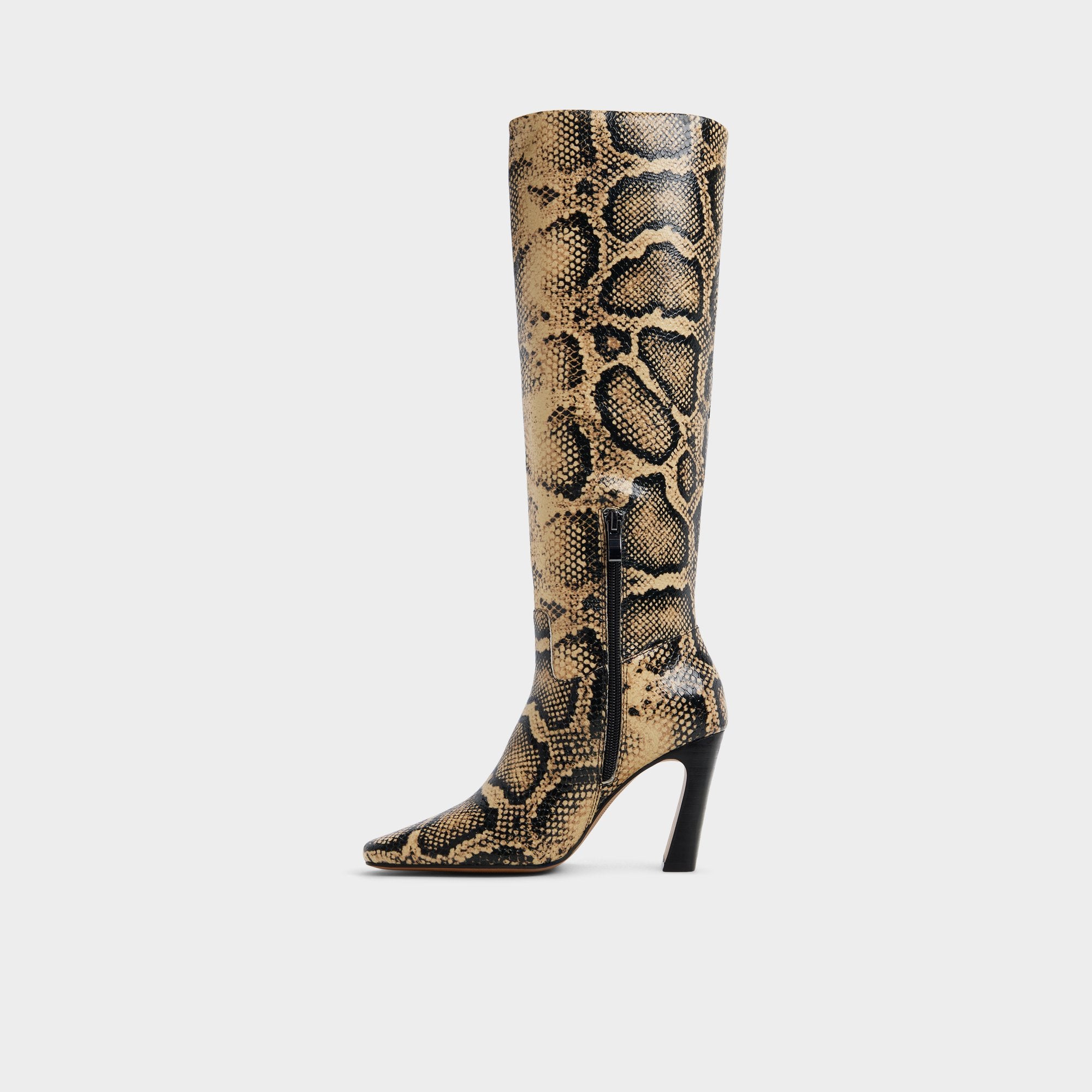 Power up every stride with a knee-high leather boot where tone-on-tone snake print meets a sky-brushing sculpted stiletto, delivering instant length and swagger that turns sidewalks into spotlights. Pair with a sleek turtleneck mini for gallery openings, or swap to skinny denim on chilly rooftop gatherings.