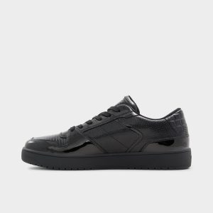 Midnight-black panels shift between gloss and grain textures in this low-top, with a striking design element that elevates the look while a cupsole steadies steps from commutes to skate sessions. Anchor cargos at galleries or charcoal joggers on flights—the tonal finish whispers cool confidence for city days and weekend getaways.